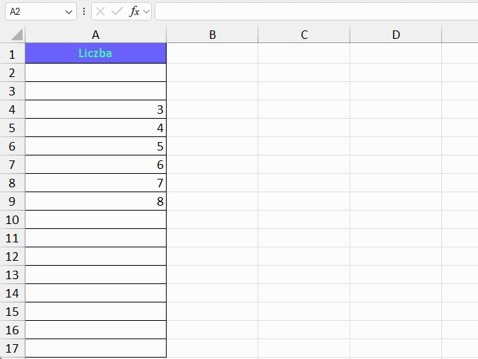 Przykład 1: Prosta numeracja w kolumnie.