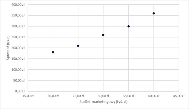 | Budżet marketingowy (tys. zł) | Sprzedaż (tys. zł) |